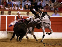 Gostava de recordar que Duarte de Almeida refere na sua enciclopédia com o maior respeito e admiração á “sorte de caras emendando a viagem” como tendo uma realização semelhante à sorte de caras propriamente dita, com a diferença porém de o cavaleiro partir para o toiro desviando a marcha para o seu lado direito, só realizando o desvio para a esquerda quando o toiro chega à jurisdição. Pois é a esta sorte que estava em desuso, que Moura Caetano repôs ontem tal como faz com a maioria dos toiros, dando-lhe dimensão.